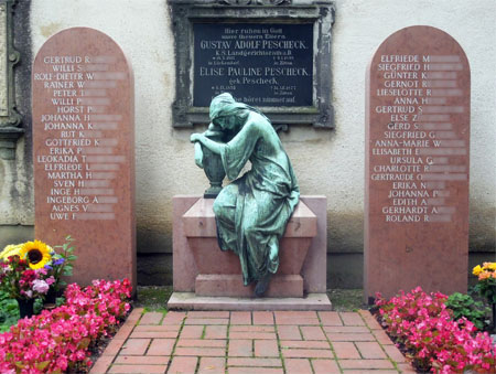 Gemeinschaftsgrabanlage Gesamtansicht, trauernde Figur in der Mitte